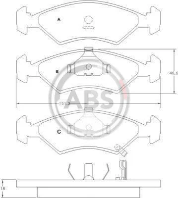 Комплект гальмівних накладок, дискове гальмо A.B.S. 36886