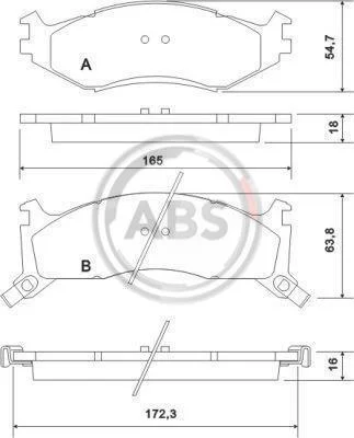 Комплект гальмівних накладок, дискове гальмо A.B.S. 38521