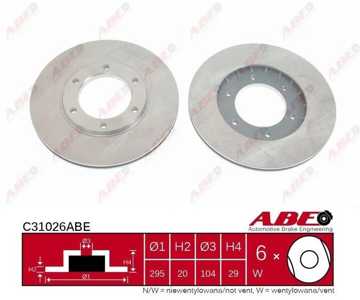 Диск гальмівний передн Лів/Прав NISSAN PATROL GR IV, PATROL GR V, PATROL III/1, PATROL III/2 2.8-4.2D 11.79- ABE C31026ABE