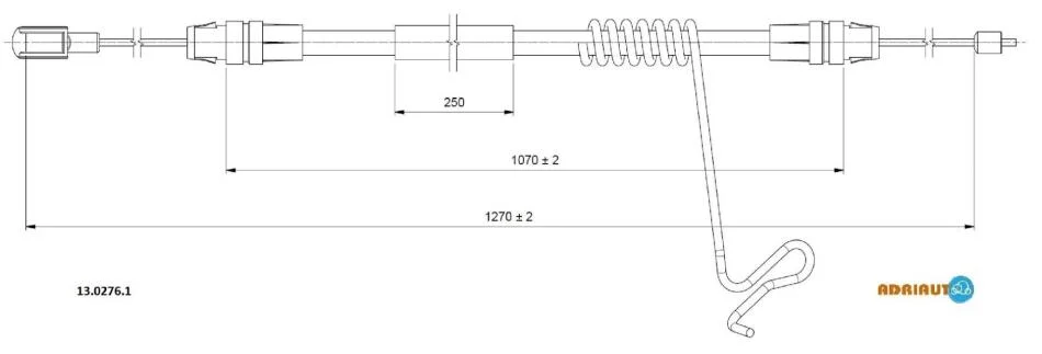 Трос стояночного гальма задн Прав (1270мм/1070мм, гальма: диск) FORD TRANSIT 2.2D/2.3/2.4D 04.06-08.14 ADRIAUTO 13.0276.1