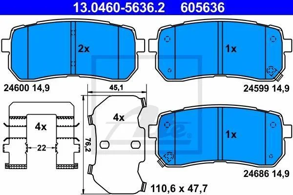 - Гальмівні колодки до дисків ATE 13.0460-5636.2