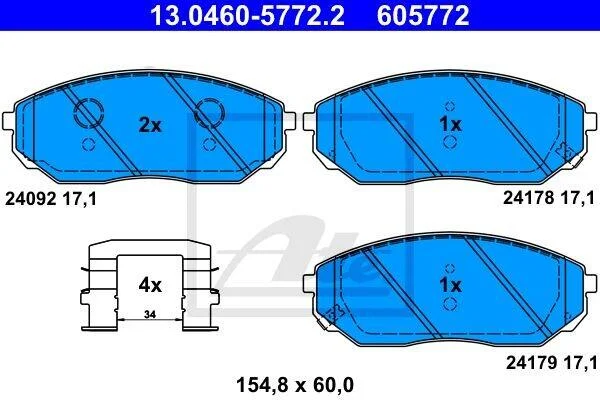 Комплект гальмівних колодок передн, KIA SORENTO I 2.4-3.5 08.02-12.11 ATE 13.0460-5772.2