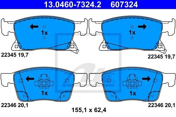 Комплект гальмівних колодок передн, OPEL ASTRA K, ASTRA K/KOMBI 1.0-1.6D 06.15- ATE 13.0460-7324.2