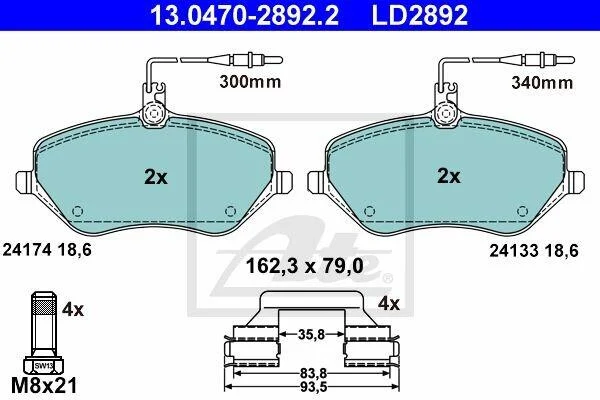 - Гальмівні колодки до дисків ATE 13.0470-2892.2