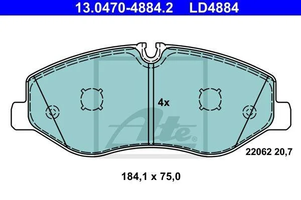 Комплект гальмівних колодок з 4 шт. дисків ATE 13.0470-4884.2