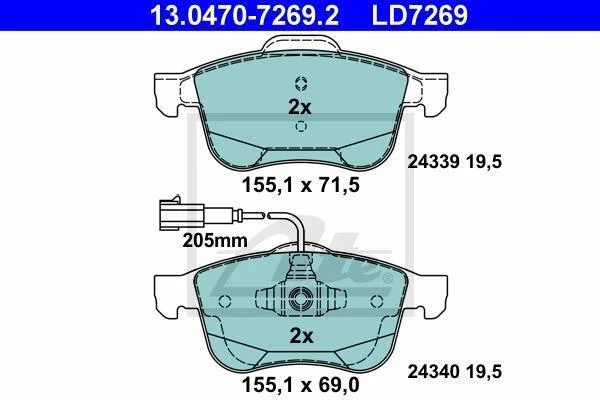 - Гальмівні колодки до дисків ATE 13.0470-7269.2