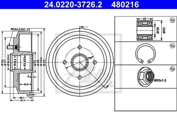 - Гальмівний барабан ATE 24.0220-3726.2