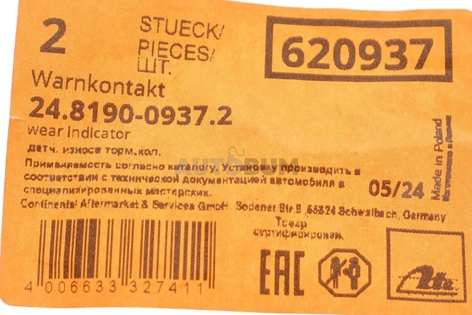 - ATE 24.8190-0937.2 підходить до марок/моделей авто: