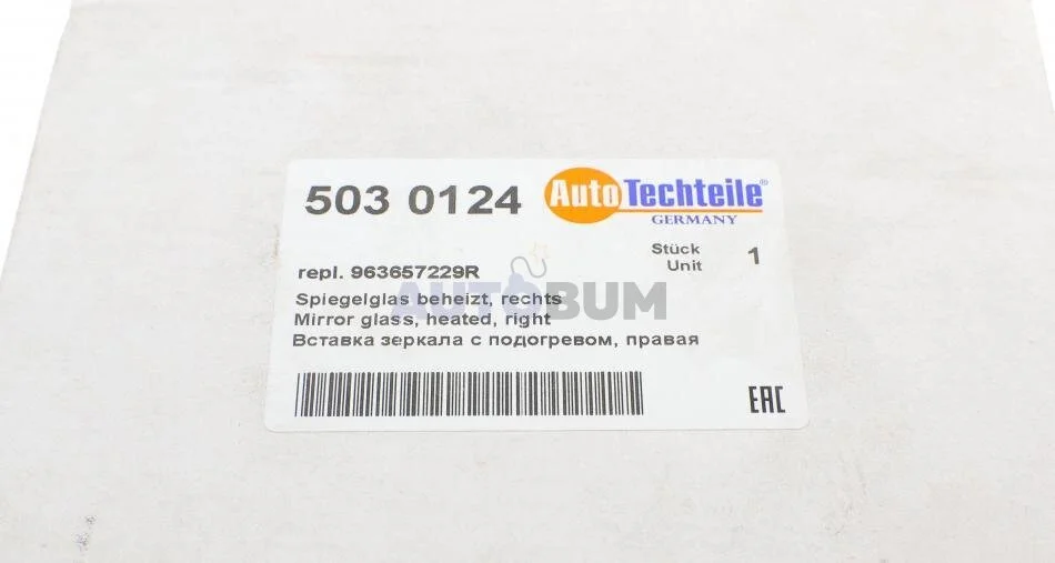 Вставка дзеркала з підігрівом, права AUTOTECHTEILE 503 0124