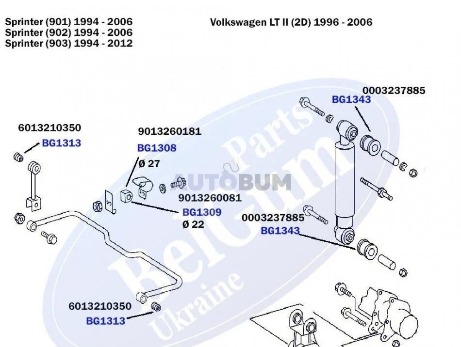 Втулка заднього стабілізатора MB Sprinter 208-306 96- BELGUM PARTS BG1308