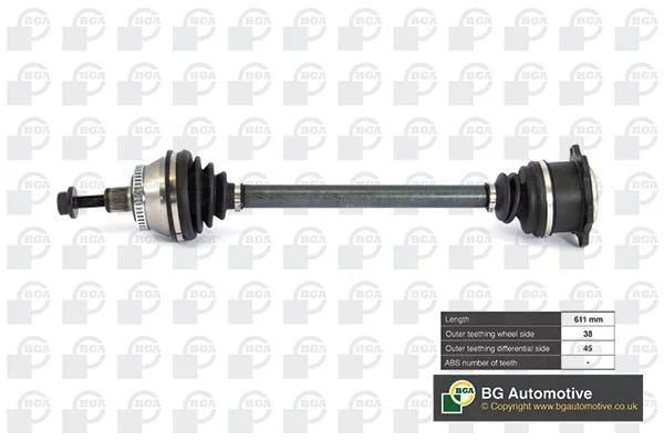 Піввісь Passat/Superb 1.9TDI/2.5TDI/2.3i/2.8i 00-05 (38/45) 611mm Л. BGA DS9621LA
