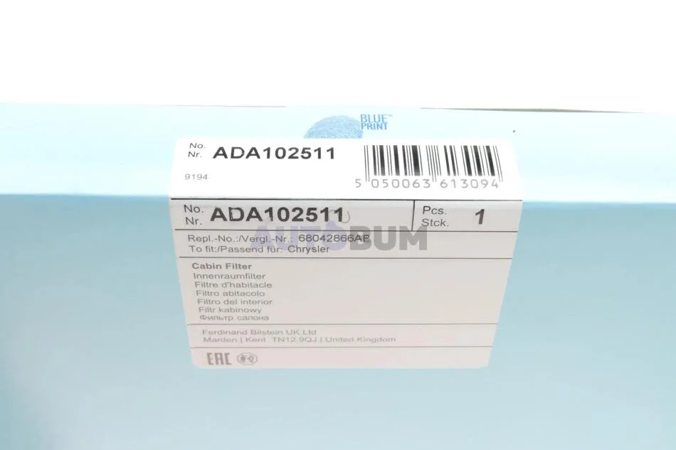 Змінний фільтруючий елемент повітряного фільтра салону BLUE PRINT ADA102511