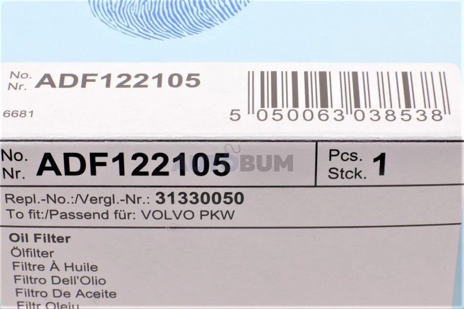 Фільтр масла з ущільнюючим кільцем BLUE PRINT ADF122105