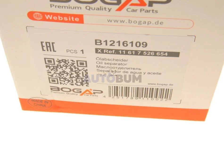 Масловідокремлювач системи вентиляції картерних газів BOGAP B1216109