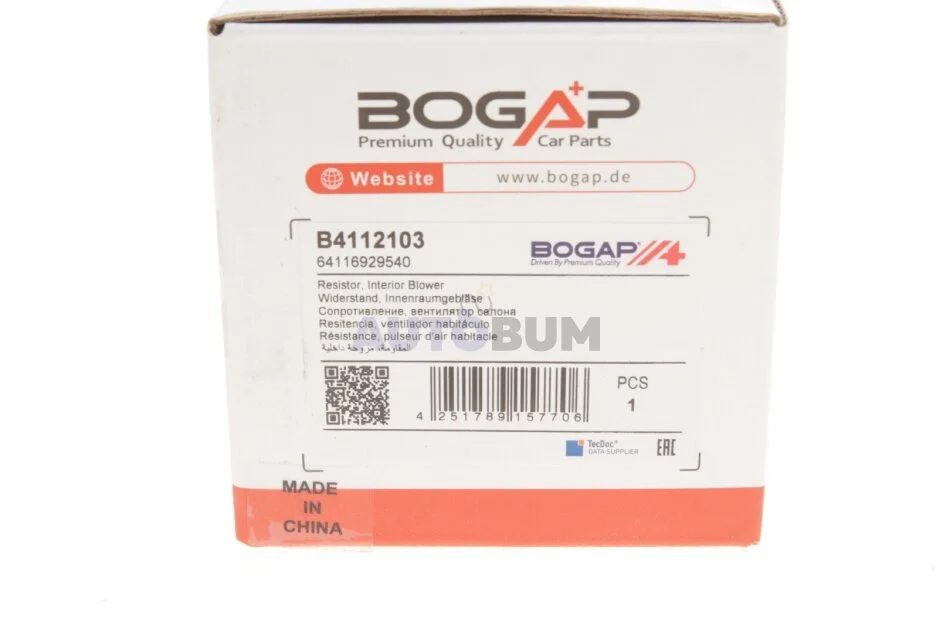 Резистор вентилятора пічки BOGAP B4112103