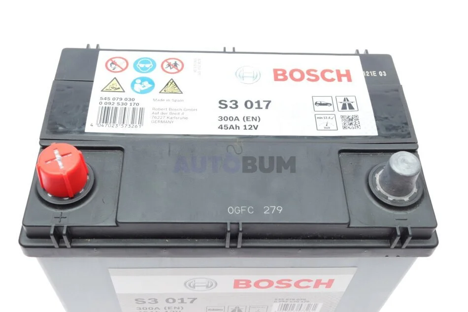 Акумулятор 12В/45Аг/300А/10,78кг BOSCH 0 092 S30 170