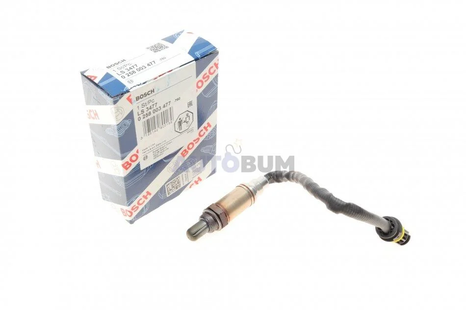 Лямбда-зонд (кількість дротів 4, 320мм) BMW 3 (E36), 3 (E46), 5 (E39), 5 (E60), 5 (E61), 7 (E38), 7 (E65, E66, E67), 8 (E31), X3 (E83), X5 (E53), Z3 (E36), Z4 (E85), Z8 (E52) 1.2-5.4 09.94- BOSCH 0 258 003 477