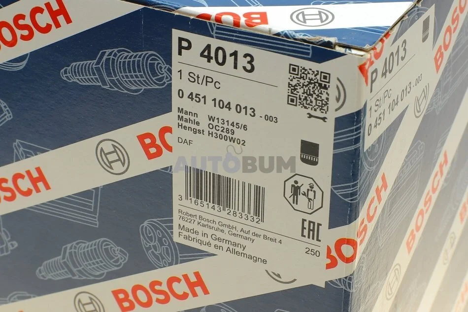 МАСТИЛЬНИЙ ФІЛЬТР BOSCH 0 451 104 013