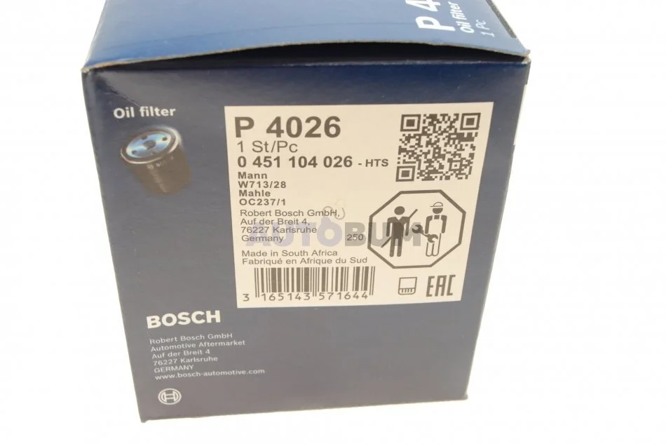 МАСТИЛЬНИЙ ФІЛЬТР BOSCH 0 451 104 026