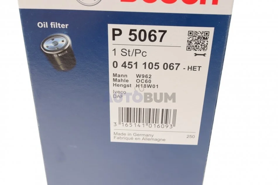 МАСТИЛЬНИЙ ФІЛЬТР BOSCH 0 451 105 067