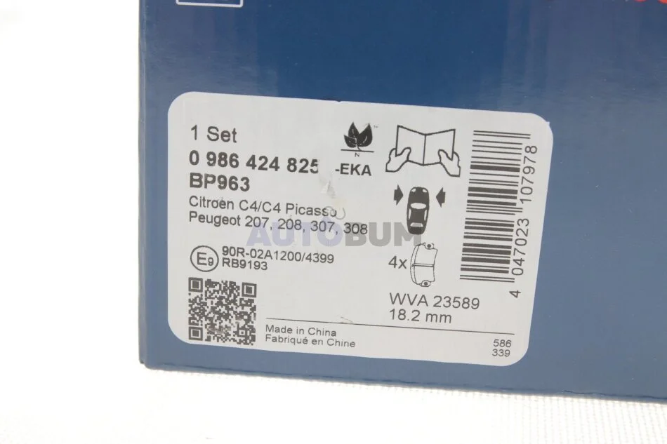 ГАЛЬМІВНІ КОЛОДКИ, ДИСКОВІ BOSCH 0 986 424 825