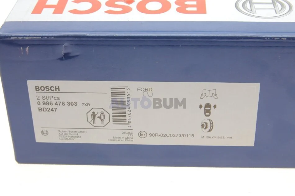 Диск гальмівний FORD TRANSIT (04/00-06/06) передн. BOSCH 0 986 478 303