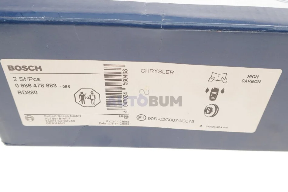 Диск гальмівний BOSCH 0 986 478 983