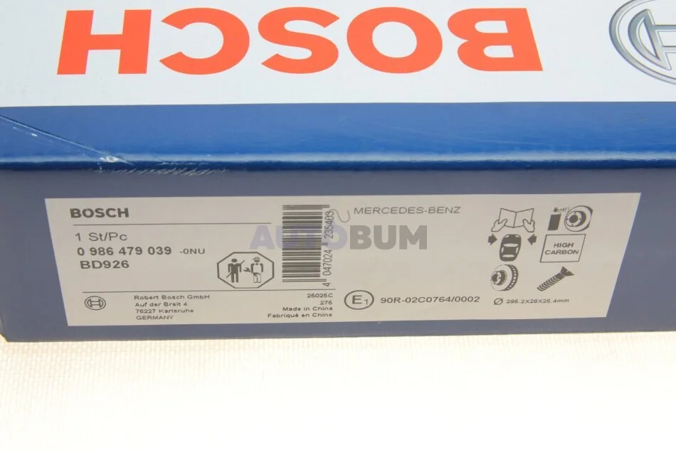 Диск гальмівний MB E200/220/230/240/270/280/300/320 W211 \'\'F \'\'02-09 BOSCH 0 986 479 039