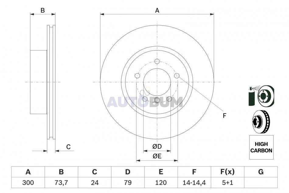 Диск гальмівний BMW 1(81;87;88;82)/3(90-94) 300mm F "05>> BOSCH 0 986 479 216