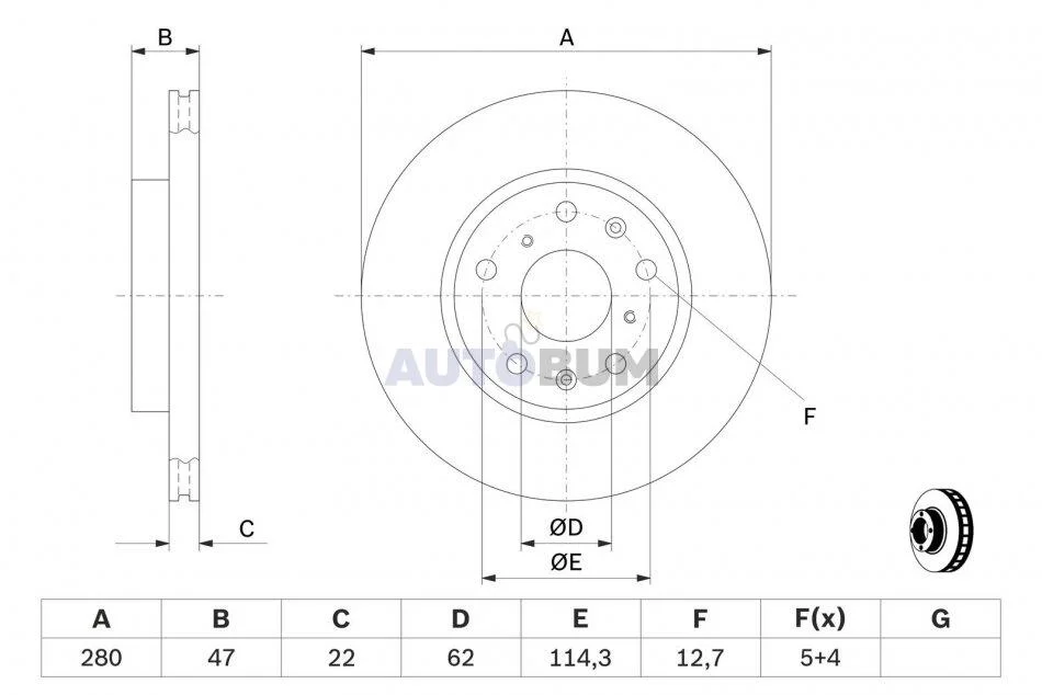 Товщина гальмівного диску (мм): 22