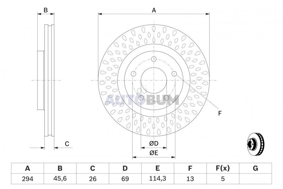 ⌀ отвору маточини [мм]: 69