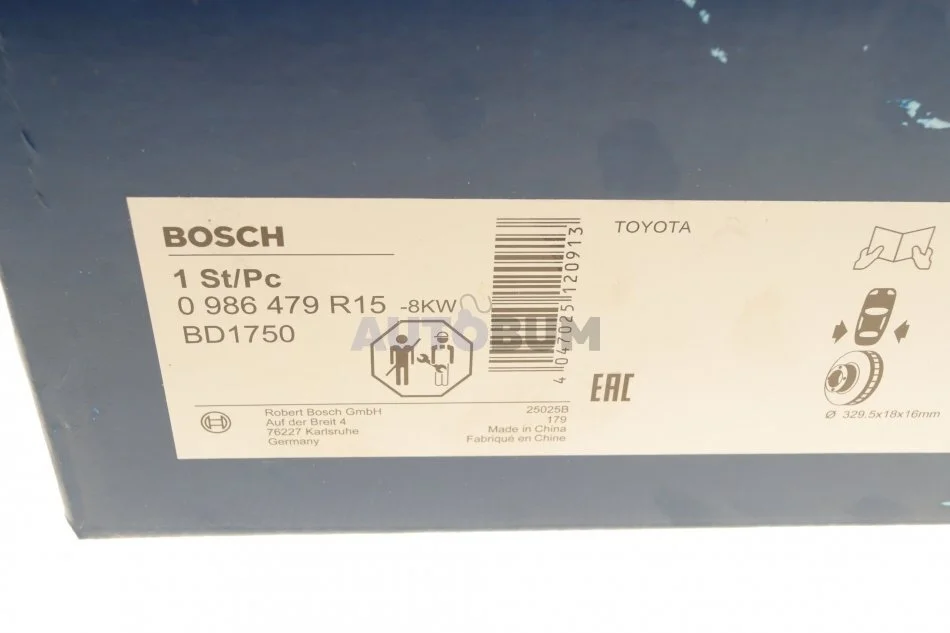 Диск гальмівний TOYOTA/LEXUS Land Cruiser/LX \'\'R \'\'4.2-4.7 \'\'98-08 - кр. 1 шт BOSCH 0 986 479 R15