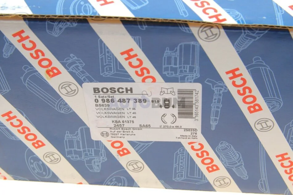 Колодки гальмівні барабан VW LT 2.4 -96 BOSCH 0 986 487 389