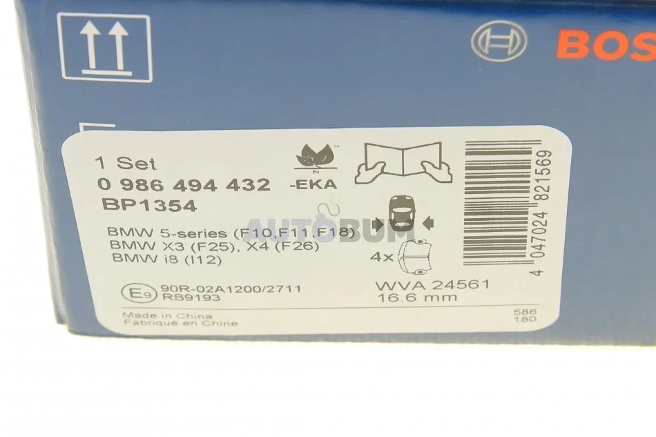 Колодка гальм. диск. BMW 5(F10) 523I-528I 2010- задн. BOSCH 0 986 494 432