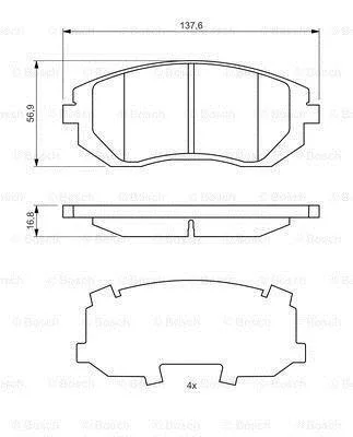 Комплект гальмівних колодок передн, SUBARU FORESTER, IMPREZA, LEGACY IV, LEGACY V, OUTBACK 1.5-3.0 12.00- BOSCH 0 986 494 653