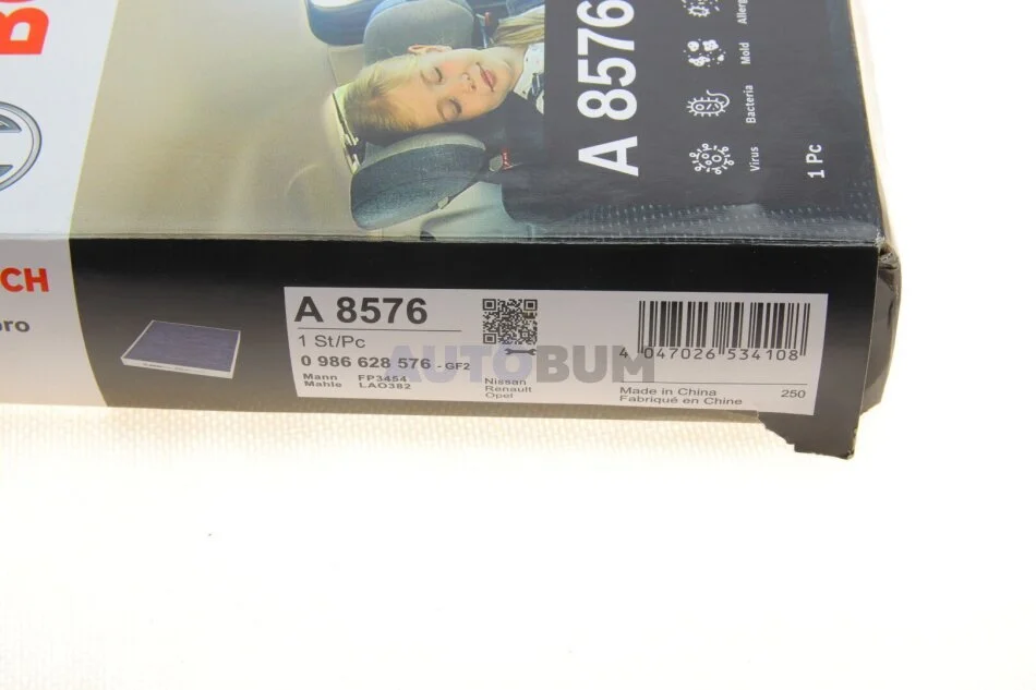 ФІЛЬТР САЛОНУ З АКТИВОВАНИМ ВУГІЛЛЯМ PRO BOSCH 0 986 628 576
