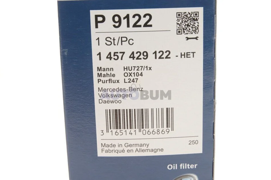 МАСТИЛЬНИЙ ФІЛЬТР W-V BOSCH 1 457 429 122