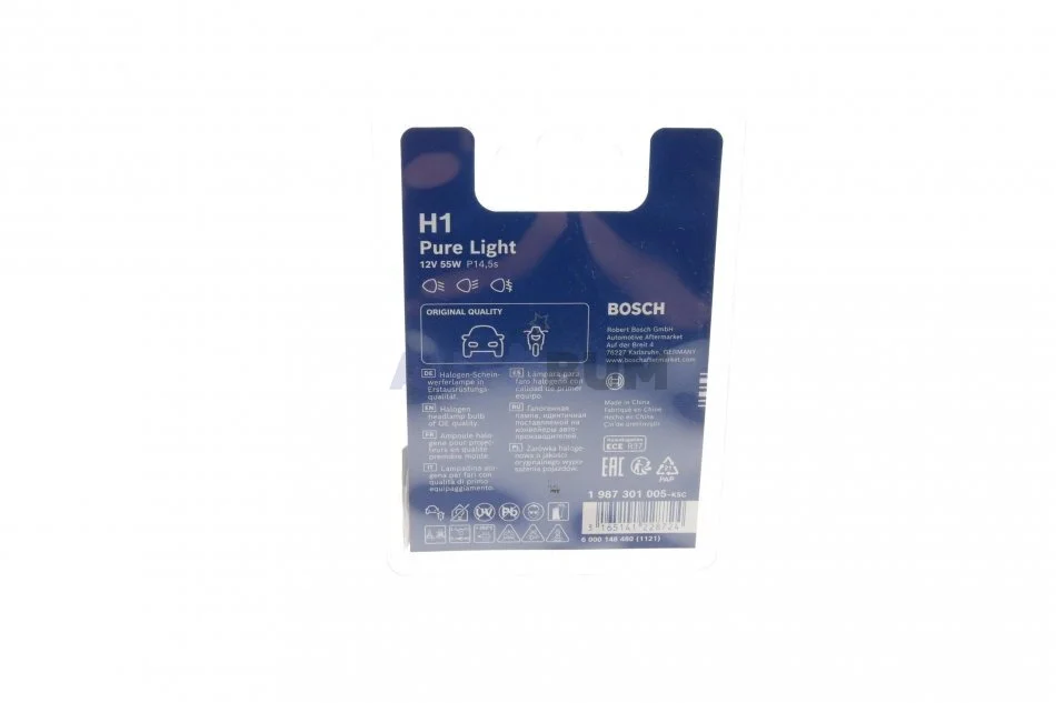 Лампа розжарювання H1 12V 55W P14,5s PURE LIGHT BOSCH 1 987 301 005
