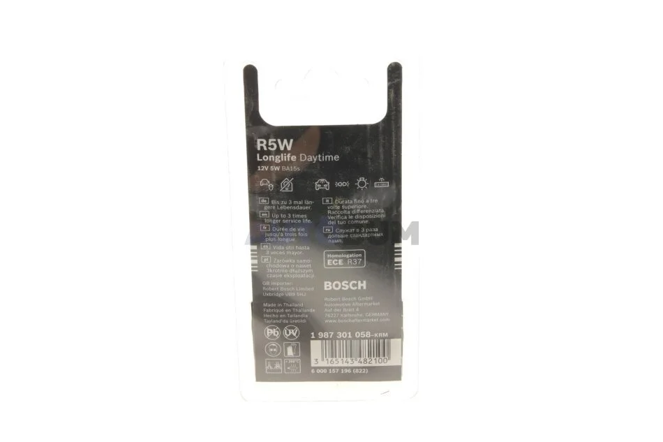 Лампочка Longlife Daytime допоміжна R5W (12 В, 5 Вт, тип гнізда: BA15S основна лампа) BOSCH 1 987 301 058