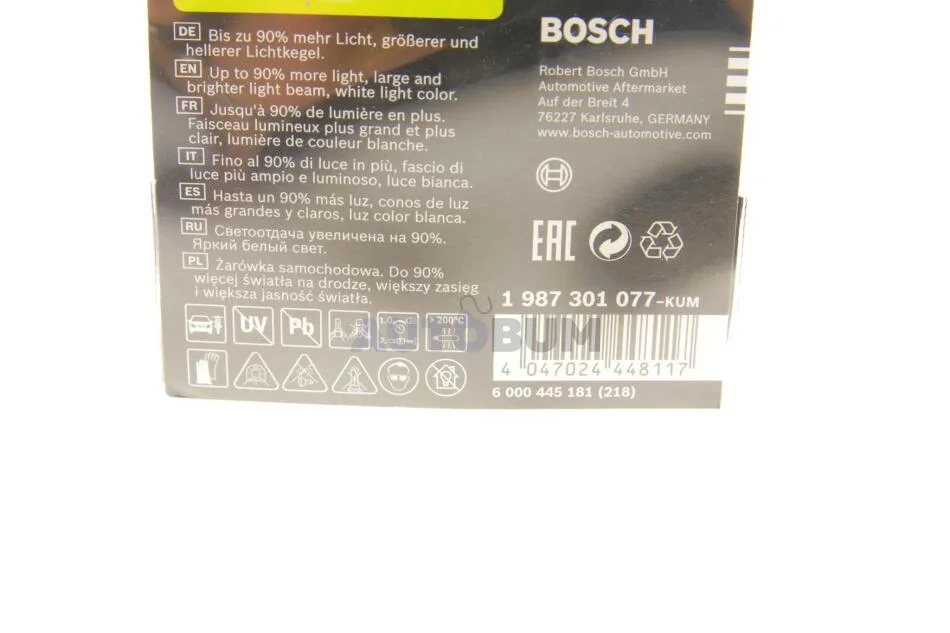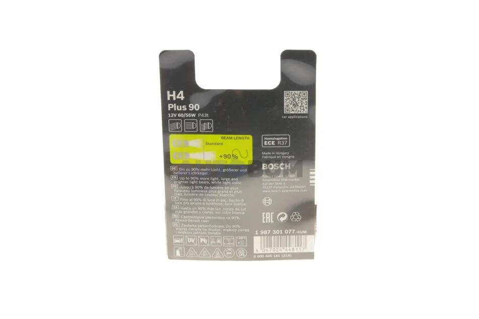 Автолампа (12V 60/55W H4 PLUS 90 блістер) BOSCH 1 987 301 077