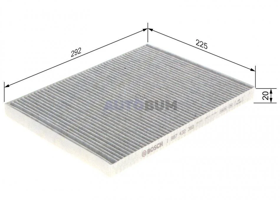 R2360 фільтр повітр. салону(вугілля) ALFA 2,0-3,2 LANCIA Kappa 2,0-3,0 BOSCH 1 987 432 360