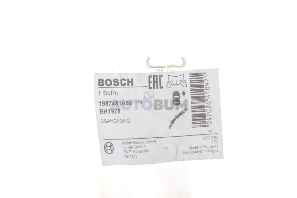 Гальмівний шланг гнучкий передн Прав (довжина 692мм,діаметр 10,2мм, M10x1) SSANGYONG ACTYON I, ACTYON SPORTS I, ACTYON SPORTS II, KYRON, REXTON / REXTON II, REXTON W / REXTON 2.0D-3.2 04.02- BOSCH 1 987 481 A88