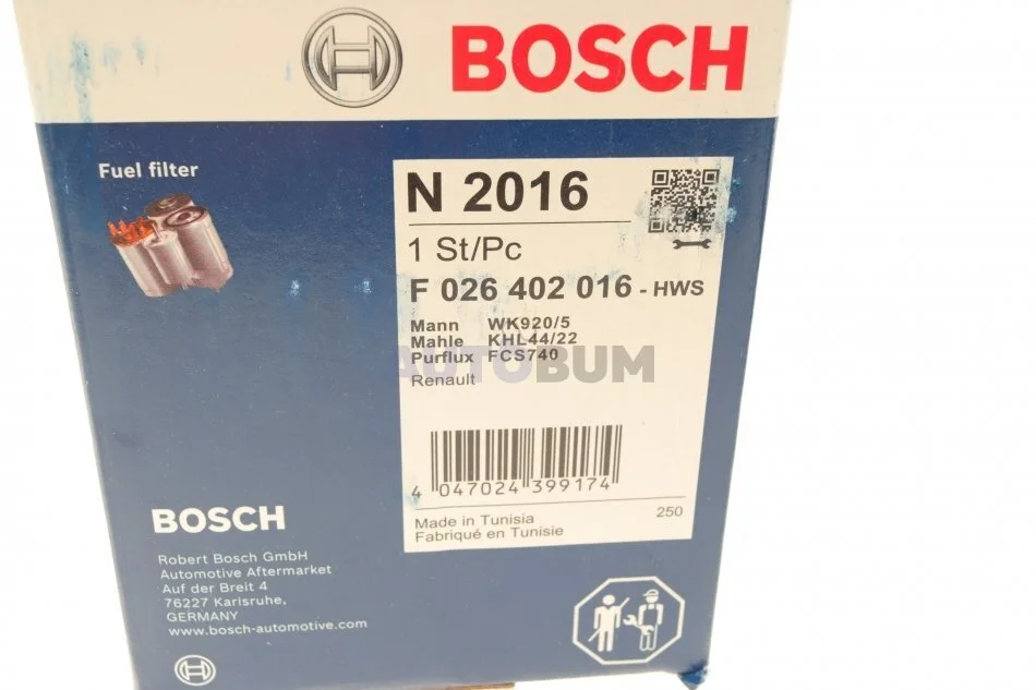 ПАЛИВНИЙ ФІЛЬТР BOSCH F 026 402 016