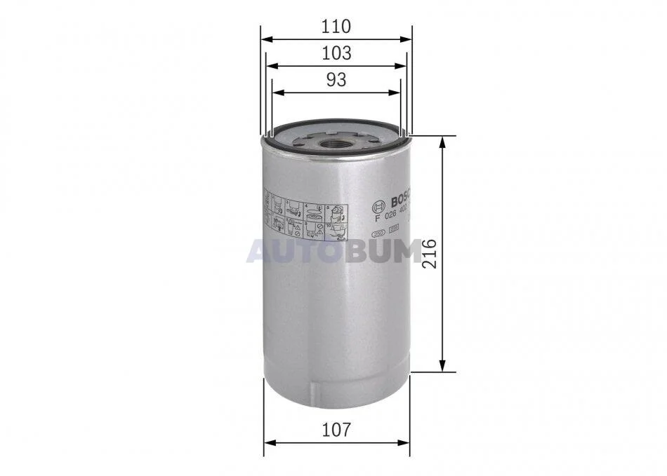 Паливний фільтр IVECO S-WAY MAN TGM I MERCEDES ACTROS, ACTROS MP2 / MP3, ATEGO, ATEGO 2, AXOR, AXOR 2, CAPACITY, CITARO 2, CITARO (O 530), CONECTO (O 345) 7.3EcotorqCargo-QSM11-C335 08.95- BOSCH F 026 402 143