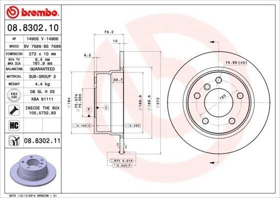 Гальмівний диск BREMBO 08.8302.11