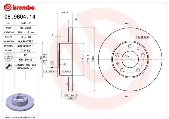 - BREMBO 08.9604.14 підходить до марок/моделей авто: