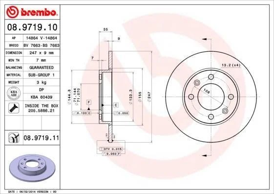 - BREMBO 08.9719.10 підходить до марок/моделей авто: