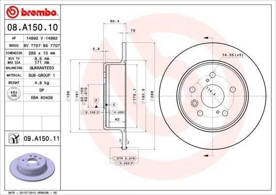 Гальмівний диск BREMBO 08.A150.11