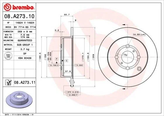 - BREMBO 08.A273.11 підходить до марок/моделей авто: