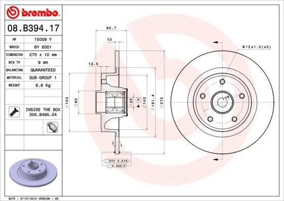 - BREMBO 08.B394.17 підходить до марок/моделей авто: